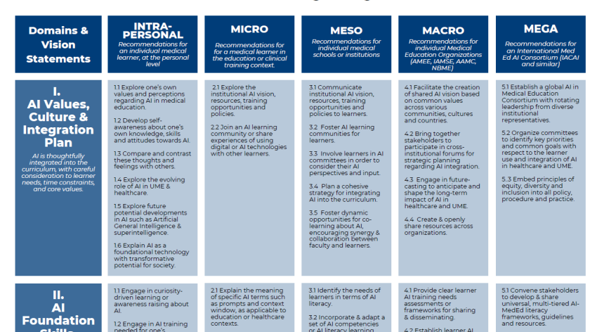 Over the last 6 months, as part of its initial charge, the committee has been considering AI’s future use and impact through the lens of undergraduate and graduate medical education. The resulting conversations, environmental scanning, and workshopping with the community, has allowed the committee to release vision frameworks that serves as guideposts for all future IACAI work and hopefully through community consensus, adaptable and implemented across the global medical education continuum.